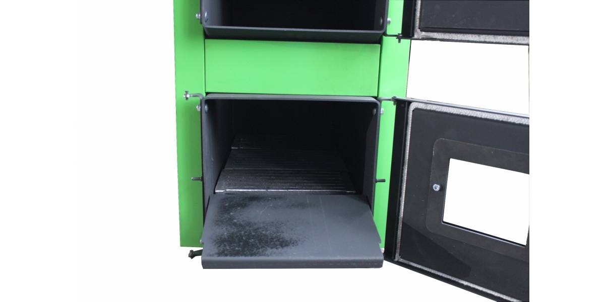 Котлы DRAGON-Bio — это универсальный котел, модельный ряд от 12 кВт до 60 кВт. Высокий КПД котла (до 88% на дровах, до 92% на угле, до 94% на пеллетах). Котел изготовлен из листовой стали 09Г2С (низколегированная сталь толщиной 5 мм выдерживает влияние широкого диапазона температур в условиях многолетних нагрузок и различных деформаций, не теряя пластичности), позволяет увеличить срок службы котла (более 20 лет). Стопроцентная чистка теплообменника, камеры сгорания и конвекционных каналов. Высокая универсальность. Котел укомплектован второй нижней дверцей, одна дверь с отверстием под горелку, вторая глухая с поддувалом для эксплуатации на дровах или угле с регулятором тяги, это позволяет без демонтажа горелки переходить с одного вида топлива на другой. Все дверцы могут быть переставлены и открываться как слева направо, так и справа налево (заводская установка дверок — открывание слева направо) для возможности установки котла как в левом углу котельной, так и в правом. Регулируемая заслонка вторичного воздуха позволяет, осуществлять дожиг пиролизных газов, выделяющийся в процессе горения древесины. В целях безопасности удаления золы перед колосниками установлена заглушка-отбойник для предотвращения выпадения из котла горящих углей при топке дровами или углем.  Котлы имеют увеличенную зольную часть и не требуют частого обслуживания.